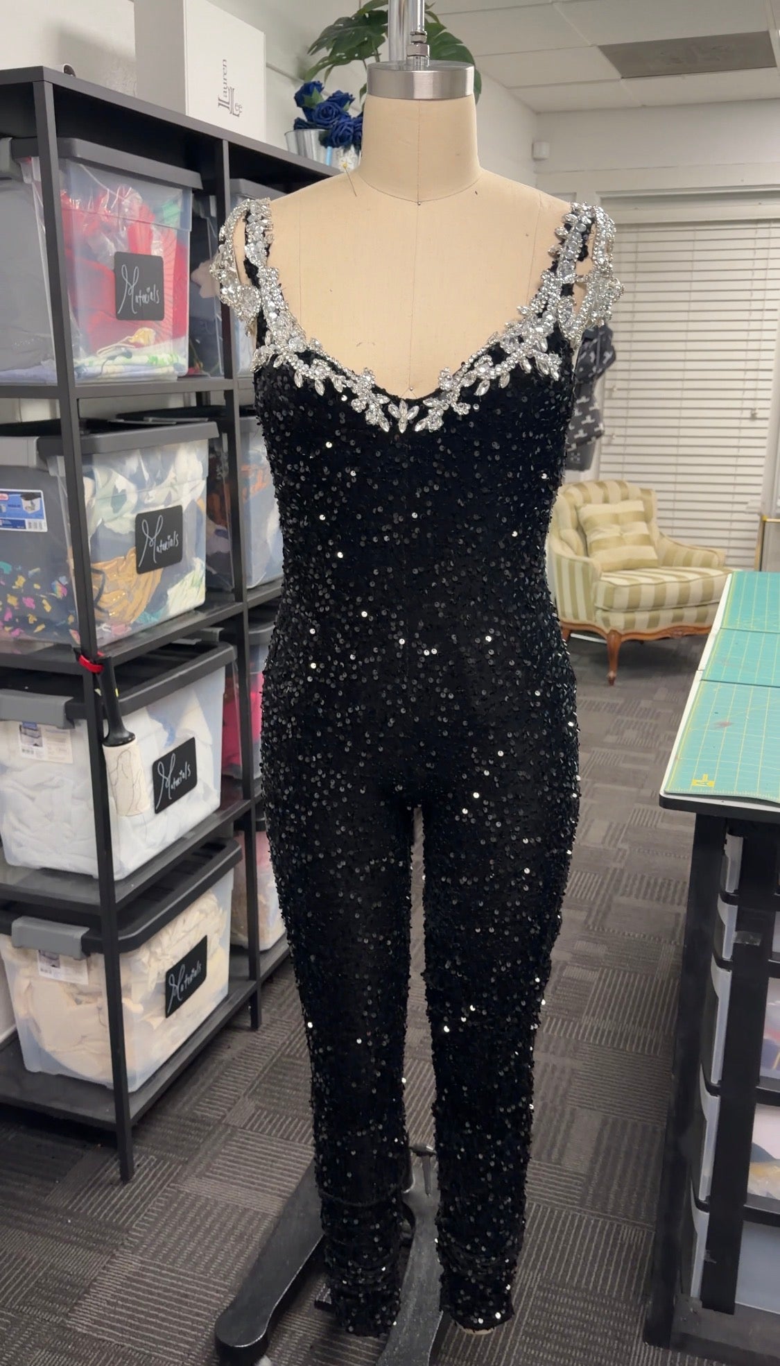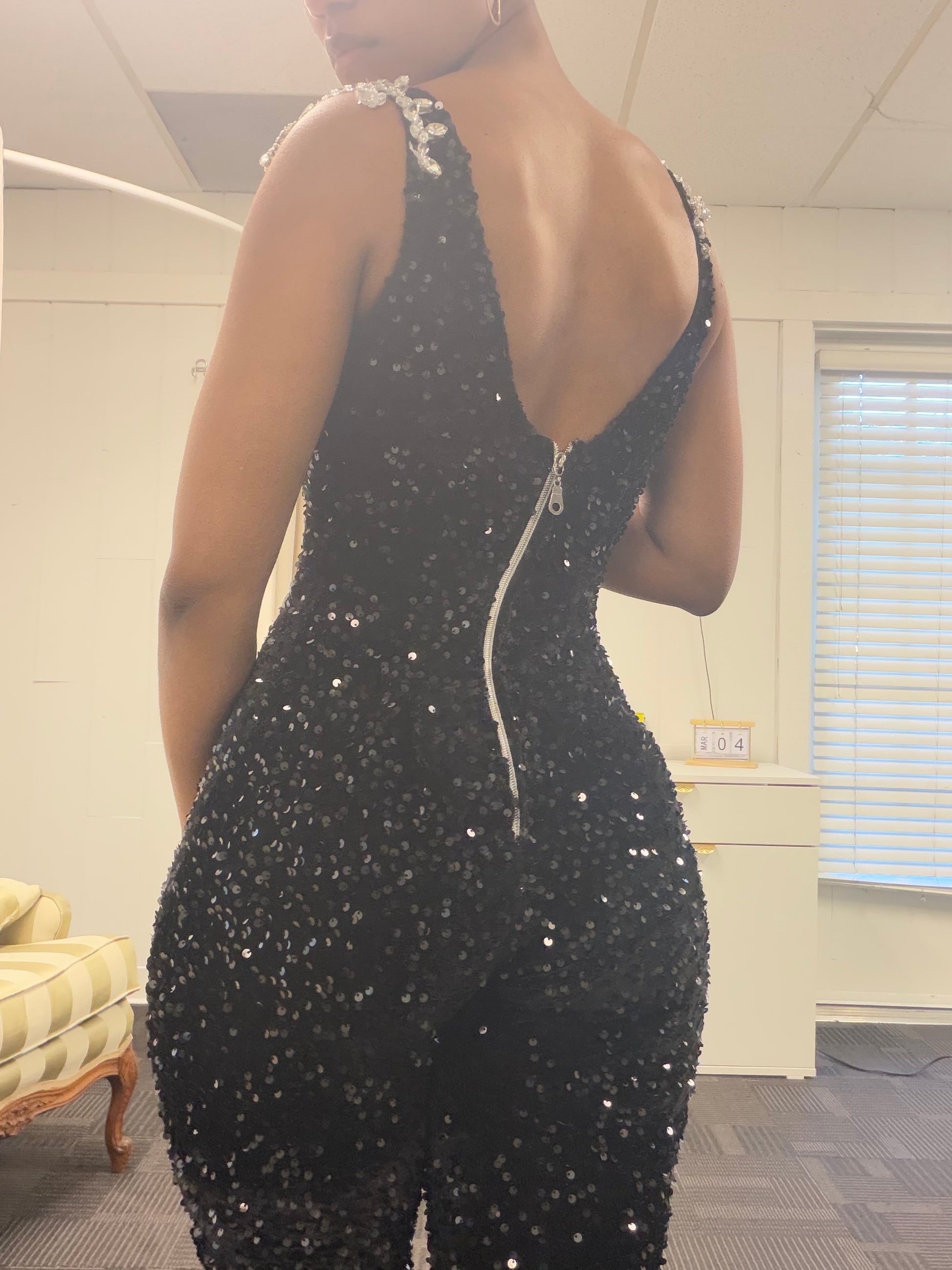 Our Black Embellished Jumpsuit is another hand-sewn garment designed and made by LaurenLeeCouture. This piece is being offered as one of our premade sample designs, perfect for prom, special events, or a statement evening look.
